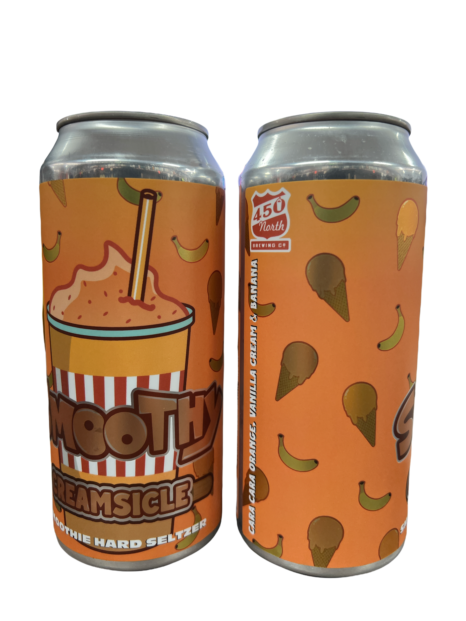 Smoothie hard seltzer with cara cara orange, vanilla cream and banana.