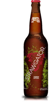 Abita Strawgator™ is the fusion of Strawberry Harvest Lager sweetness with the bite of Andygator. This golden lager is made with malted barley and wheat. It is hopped with German Perle hops for a delicate hop flavor. After filtration, generous amounts of fresh Louisiana strawberry juice are added, giving the beer a pleasant sweet taste and armoa, as well as a rich golden color and slight cloudiness.