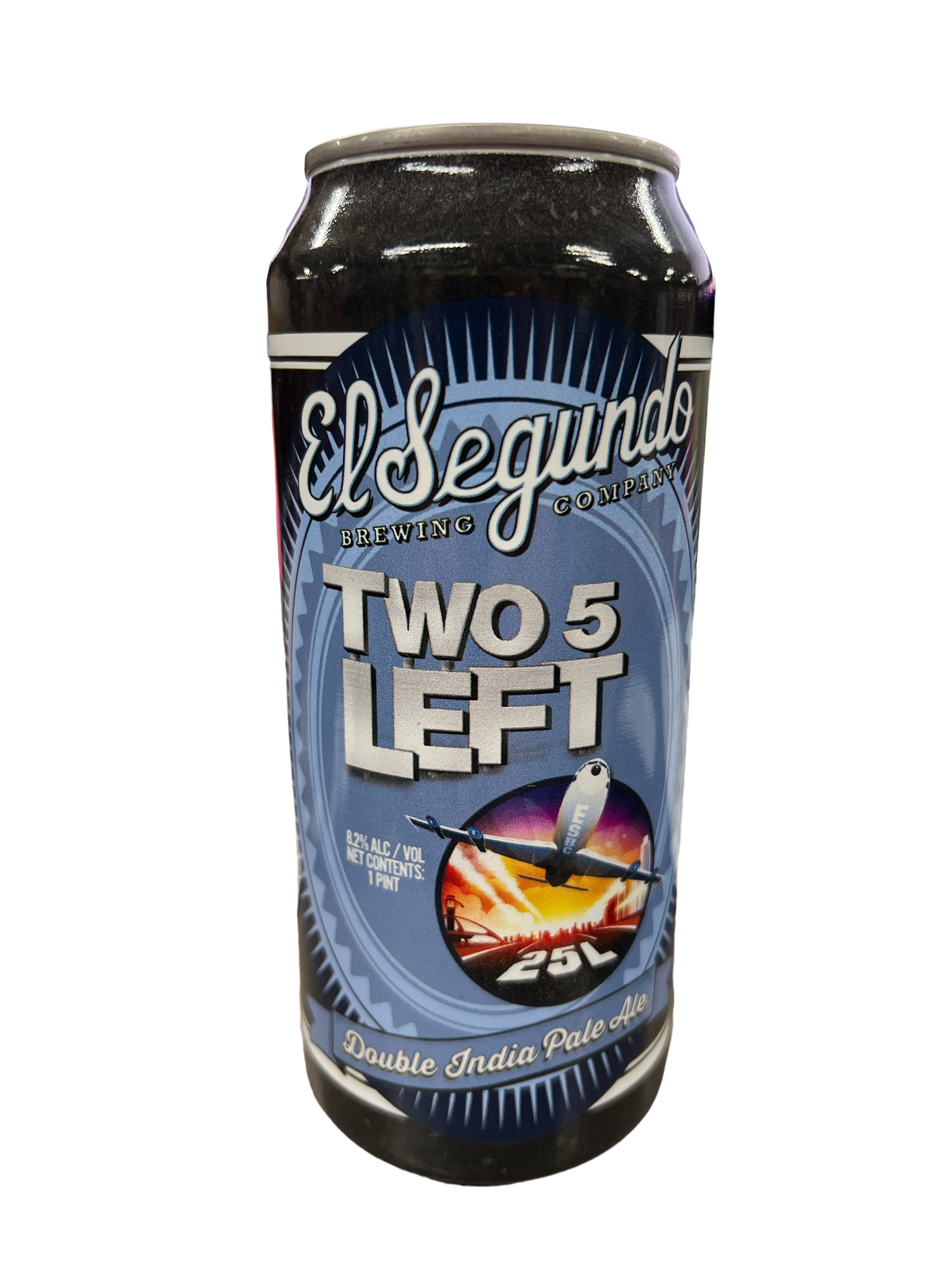 A brazenly hop-forward beast of a beer, with a huge passionfruit nose. A subtle caramel character provides a malt backbone to shoulder the massive amount of dry-hopping that gives this beer its unique aroma and hop flavor. Two 5 Left is the runway that sends planes screaming right over El Segundo. We always knew we would name a beer after this local landmark and when it came to naming our first Double IPA, it fit the bill perfectly.
