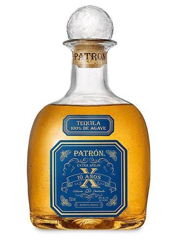 Patrón Extra Añejo 10 Años is the oldest tequila made at the Hacienda Patrón distillery in Jalisco, Mexico. The finest 100% Weber Blue Agave is harvested, baked, distilled and then aged for an impressive 10 years in American oak barrels and hybrid American/French Limousin oak barrels. It is presented in a hand-blown glass replica of the very first Patrón bottle.