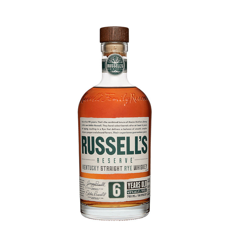 Russell's Reserve is a hand-crafted and small batch bourbon and rye whiskey created by Wild Turkey's legendary Master Distiller, Jimmy Russell, and his son, Master Distiller Eddie Russell. It uniquely reflects the expertise that comes with their over 94 years of combined experience. Russell's Reserve Bourbon is a beautiful deep amber color with a nose rich in vanilla, oak, and toffee. Its mellow warmth is balanced by notes of white pepper and orange peel. Russell's Reserve Bourbon was awarded