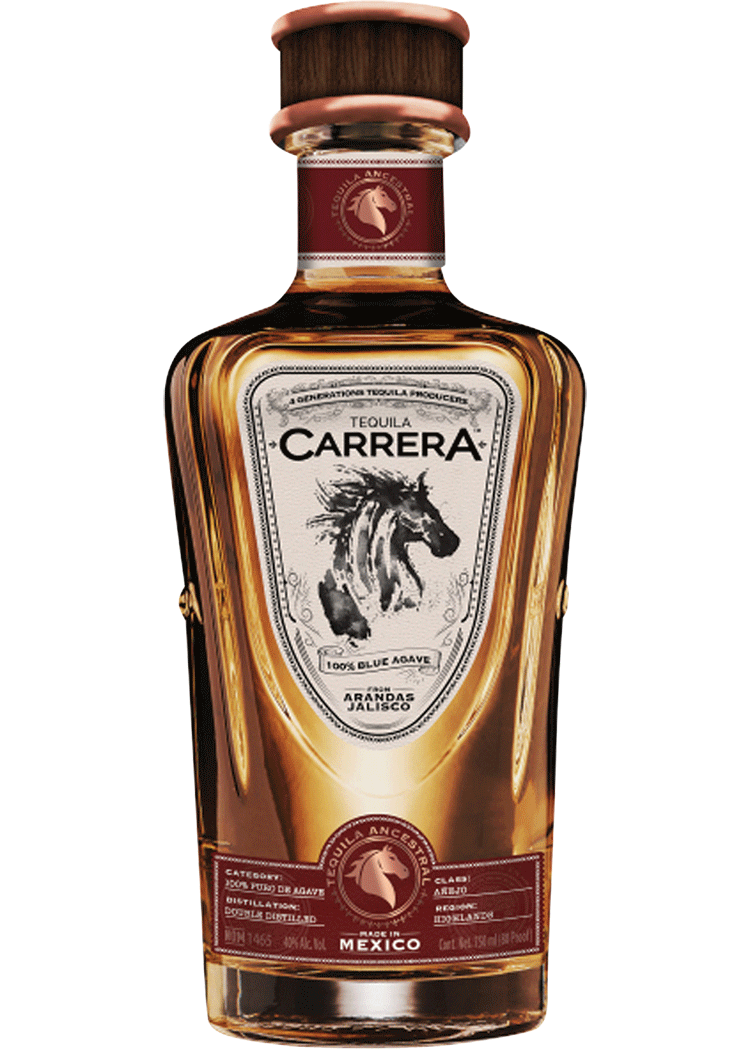 Mexico- Tequila Carrera has been dedicated to the manufacture of tequila for over 15 years. All agaves grow 6-8 years to maturity and are cooked in a stone/brick oven. Aroma: Vanilla, American Oak, Cooked agave and spices. Flavor: American Oak, followed with sweet agave and black pepper