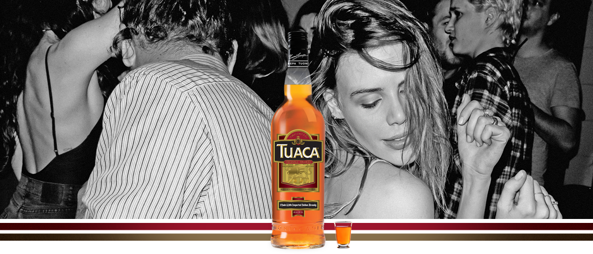Tuaca is a naturally flavored brandy liqueur originally produced by the Tuoni and Canepa families of Livorno, Italy. Tuaca is sweet and golden brown in color. Its ingredients include brandy, citrus essences, vanilla, and other secret spices. It is bottled at 70 proof.