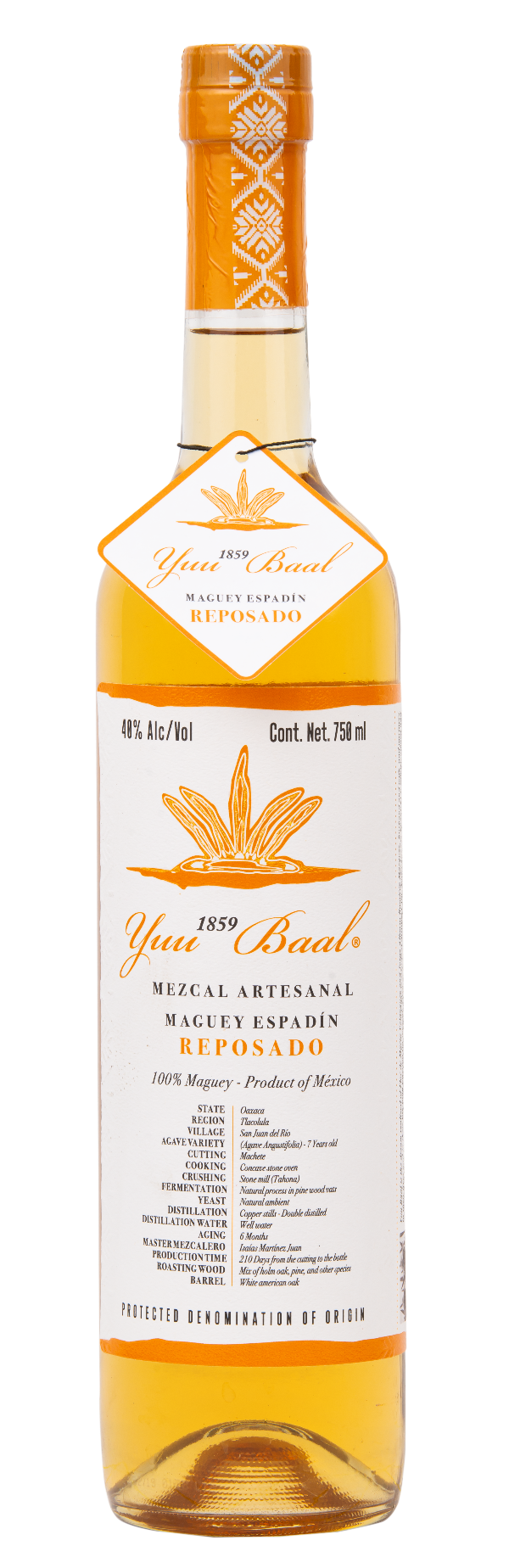 At Yuu Baal, mezcal production is an artisan process, comprised of producers in San Juan del Rio, San Luis del Rio, Tiacolula, and Miahuatlan, Oaxaca. The complete cycle of production from planting, cutting and distillation, are done manually, all with absolute respect for our environment. Pale golden-yellow in color, full bodied, with a most delightful aroma.